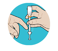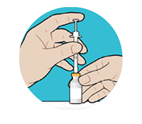 Put the vial on a flat surface and hold it. Insert the syringe into the vial, and press down on the plunger to inject the air from Step 2 back into the vial.