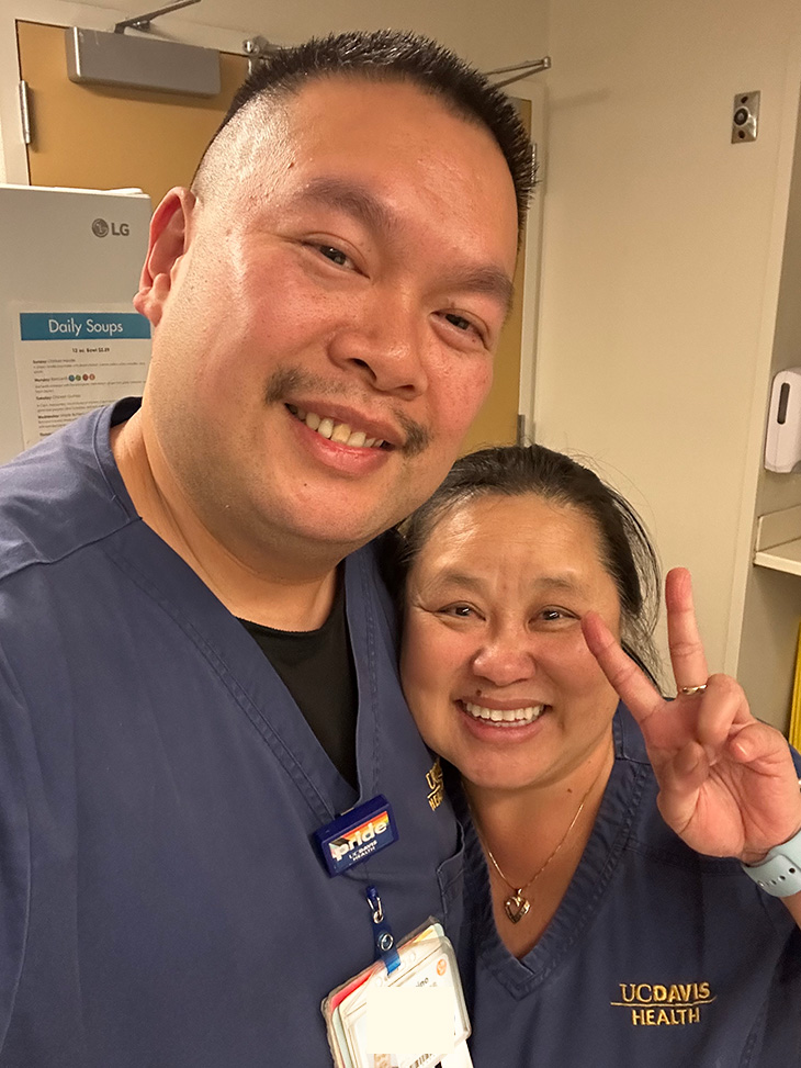 He interviewed for the position and joined Saechou at Tower 4, where he worked for more than 10 years under the guidance of his mentor. Earlier this year, 21 years after Aquino joined UC Davis Health as a student nurse intern, Saechou retired.