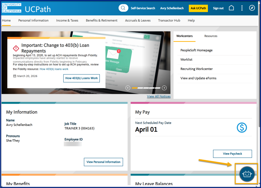 UCPath’s new employee support chatbot, PathPal, is now available 24/7 to all UC employees. PathPal helps employees and managers quickly find information and guidance for common UCPath self-service tasks. The chatbot provides step-by-step guidance and links to official UCPath job aids, making it easier to locate the resources needed to complete common activities in UCPath.