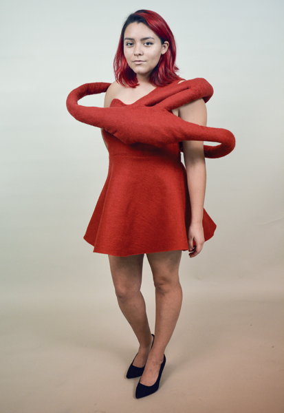 Designer’s statement: I made this dress because it’s what popped into my head when I thought of a healthy human heart. I wanted the dress to look sturdy but soft and structured but huggable, because a healthy heart needs to be sturdy and structured in order to do its job well for the entirety of our lives. But the heart also represents emotion; something that loves and is comforting. The wool allowed me to build a dress that was seamless and nearly perfect. |