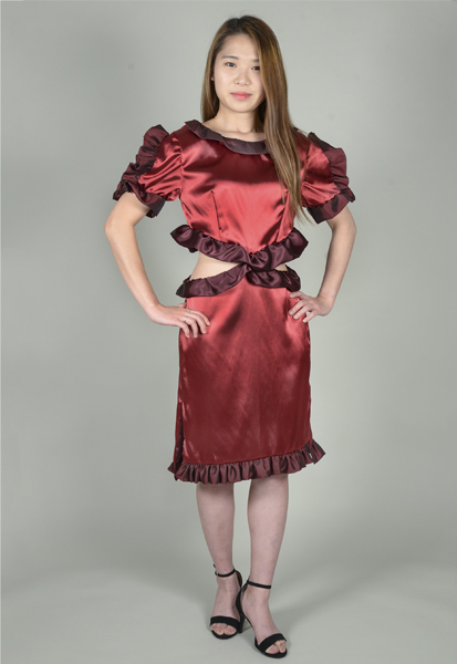 Designer’s statement: Heart disease is the number one killer of women. This sounds extremely daunting. In hope of giving strength to those with heart disease, I present Ruby Angel. The heart should not be chained by worries of malady. It should be free to beat, free to feel and free to love. For this dress, I express this feeling of freedom. With wings of love, women can go anywhere they please, without being dragged down by fear, and they can feel bold, strong and confident. Victims of heart disease go through distress, yet they can pull through. This dress is a testament to the immense strength, courage and love that these women possess. |