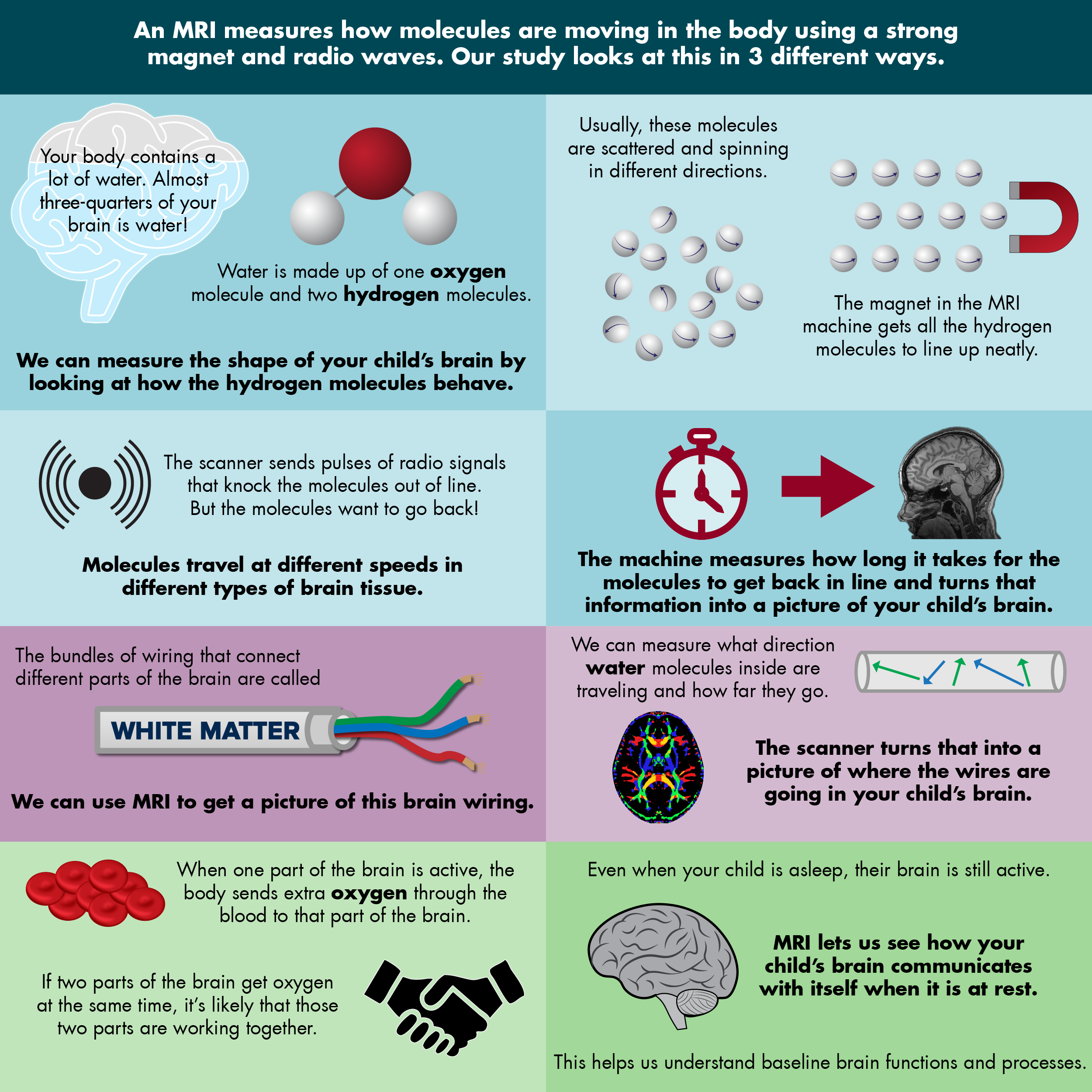 Our research team analyzes the data we collect through the study. This includes people at different levels of their career and education, including graduate students, fellowship trainees, and professional researchers. Most of these individuals work "behind the scenes." However, some help with our MRI process, and families may meet them during an MRI visit.